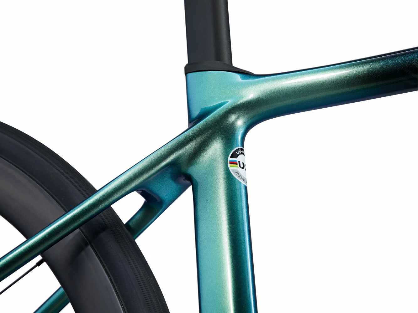 Les nouveaux profils des tubes du cadre et de la fourche, ont été conçus grâce à un protocole CFD, validé en soufflerie. Ils augmentent l’aérodynamisme en réduisant la trainée, et réduisent la prise au vent latérale.