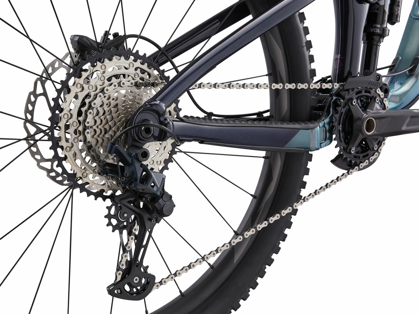 Une nouvelle suspension arrière Maestro avec un plus grand débattement (160mm) a été développée et testée sous les conditions extrêmes des Enduro World Series. Les amortisseurs ont une course plus longue (62,5 mm contre 60mm sur la génération précédente). La biellette supérieure en composite Advanced Forged ajoute de la rigidité e diminue le poids global.