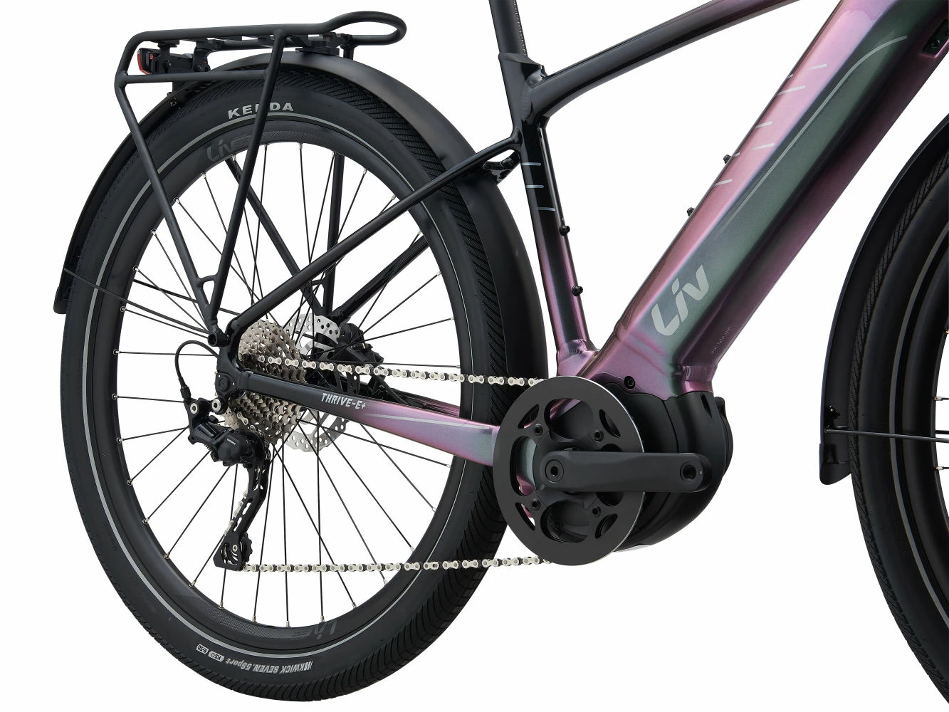 Un cadre conçu spécifiquement pour les femmes selon la philosophie Liv. Il possède une selle et des poignées adaptées aux vélos électriques, offrant une expérience de conduite confortable et agréable.