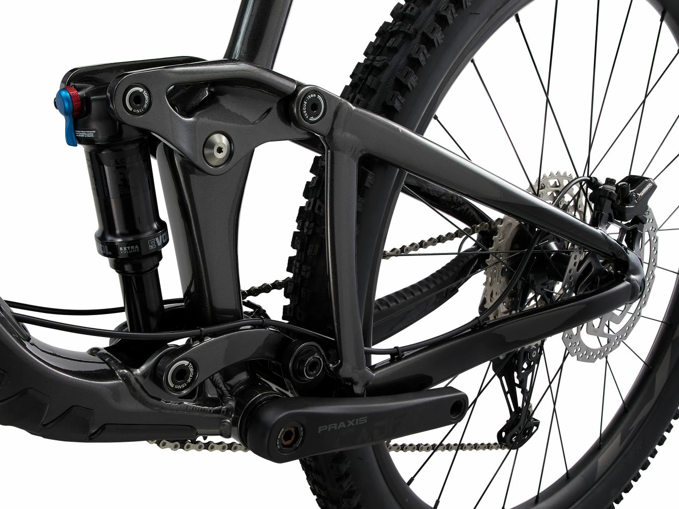 Le cadre en aluminium léger ALUXX SL dispose d’un reach rallongé pour plus de stabilité en terrain technique, et un tube de selle redressé pour renforcer l’efficacité au pédalage. La suspension arrière Maestro mise à jour offre un débattement des roues arrière de 120mm associé à une fourche de 130mm à l’avant.