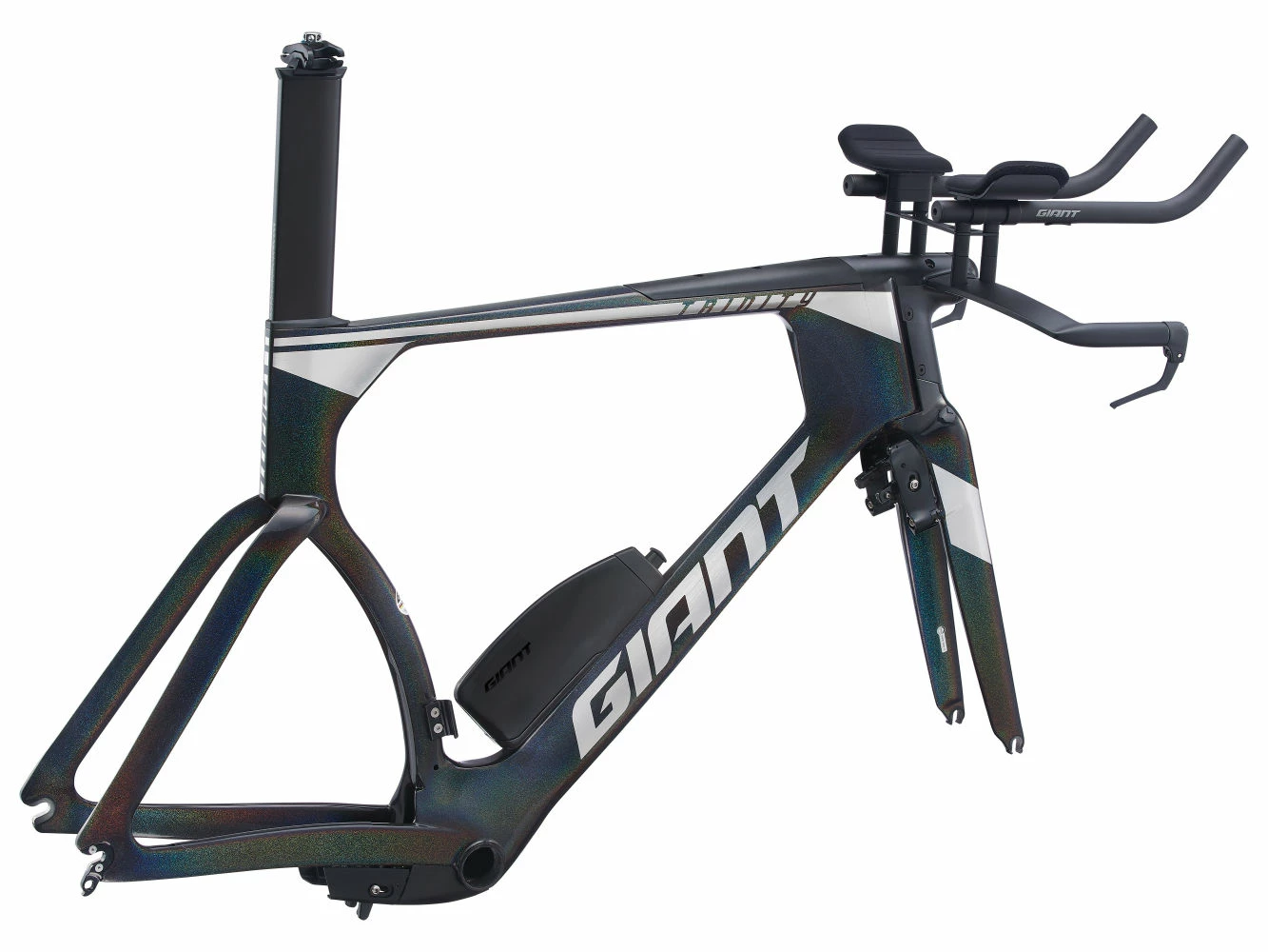 Conçu à partir de données numériques de mécanique des fluides et de tests en soufflerie, permettant d’optimiser la forme de chaque tube, le Trinity Advanced Pro offre un avantage aérodynamique éprouvé. Fabriqué à la main en composite Advanced et méticuleusement formé avec la technologie AeroSystem Shaping de Giant, il découpe littéralement l’air mieux que tout autre vélo de sa catégorie. Conçu pour la course contre la montre, pendant un triathlon ou un chrono sur route, il offre un confort non négligeable pour les entraînements et les courses de longue distance. De plus, son système AeroVault unique comprend une unité d’hydratation avant intégrée, une boîte de rangement pour le tube supérieur et une bouteille d’eau pour tube inférieur qui, ensemble, améliorent les performances aérodynamiques du vélo sur la route.